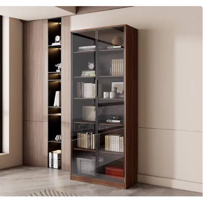 实木书柜储物柜一体家用客厅靠墙展示柜置物架带玻璃门整墙落地柜