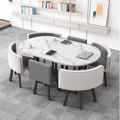 浅灰白色1.5*0.9m简约商务洽谈桌椅组合休息区办公小型会议桌培训接待长桌家用餐桌